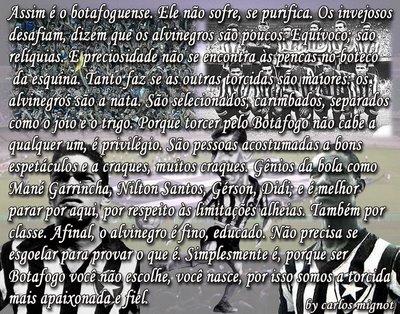 MUITO LEGAL, VOCÊ SOUBE DESCREVER A ALMA BOTAFOGUENSE, POR ISSO SEMPRE CITO O SEGUINTE :