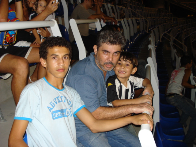 Eu, meu filho Emmanuel e um colega dele, sofrendo em mais um jogo no engenhão